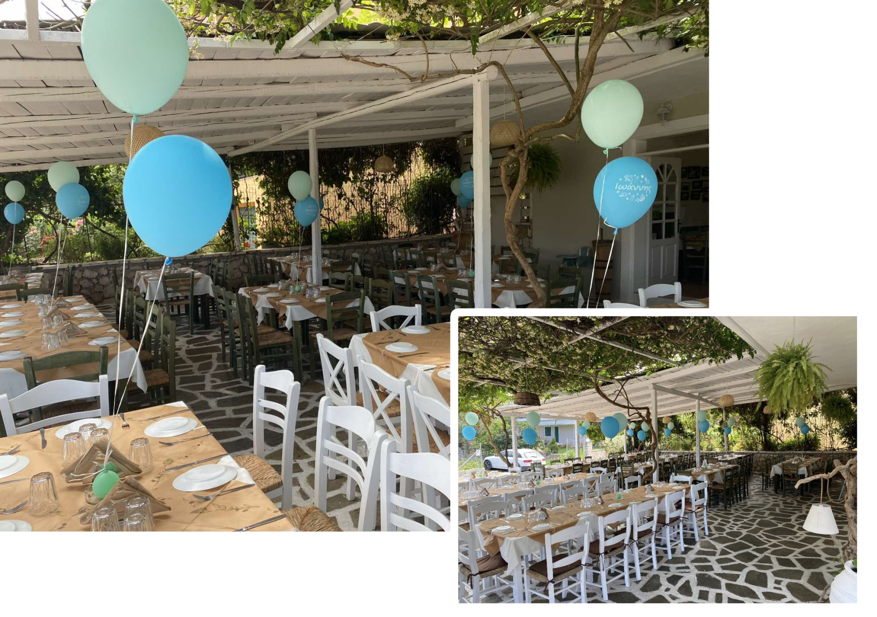 ![]() ΕΚΔΗΛΩΣΕΙΣ & ΦΙΛΟΞΕΝΙΑ Το ψητοπωλείο «Οι Σκάροι» αποτελεί ιδανική επιλογή και για κοινωνικές εκδηλώσεις, όπως βαφτίσεις και μικρούς γάμους. Ο χώρος μας διαθέτει μεγάλη εξωτερική αυλή, η οποία μπορεί να φιλοξενήσει έως και 200 άτομα, προσφέροντας άνεση, όμορφο περιβάλλον και άψογη εξυπηρέτηση για κάθε ιδιαίτερη στιγμή. Αναλαμβάνουμε τη διοργάνωση της εκδήλωσής σας με υπευθυνότητα και φροντίδα, ώστε να απολαύσετε μαζί με τους καλεσμένους σας μια ξεχωριστή εμπειρία. |